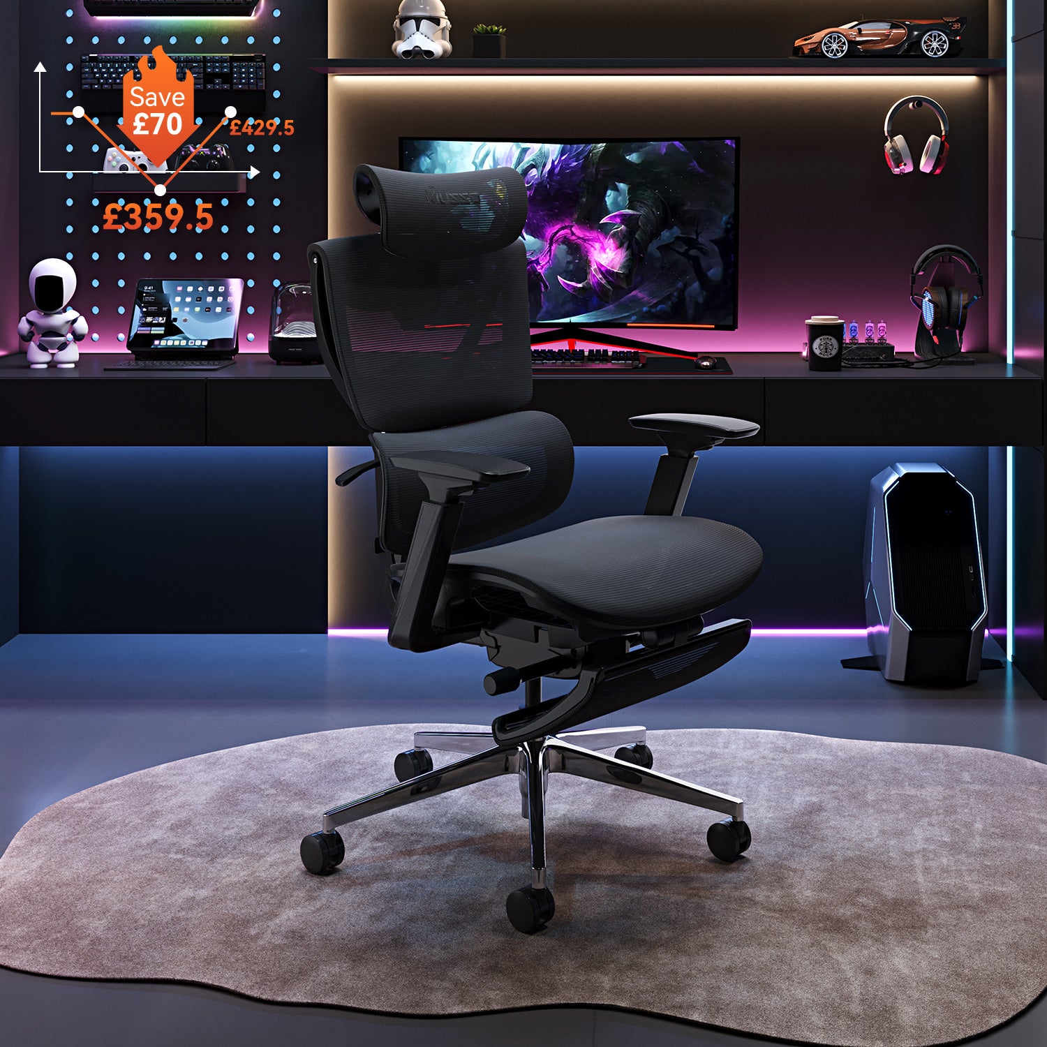 MUSSO V900 Structure Master® Ergonomic Chair is ideal for those who spend long hours at their desk—designers, programmers, traders, and content creators. Its Y-shaped back frame offers excellent support for your neck, chest, and lower back, ensuring comfort during extended work sessions.